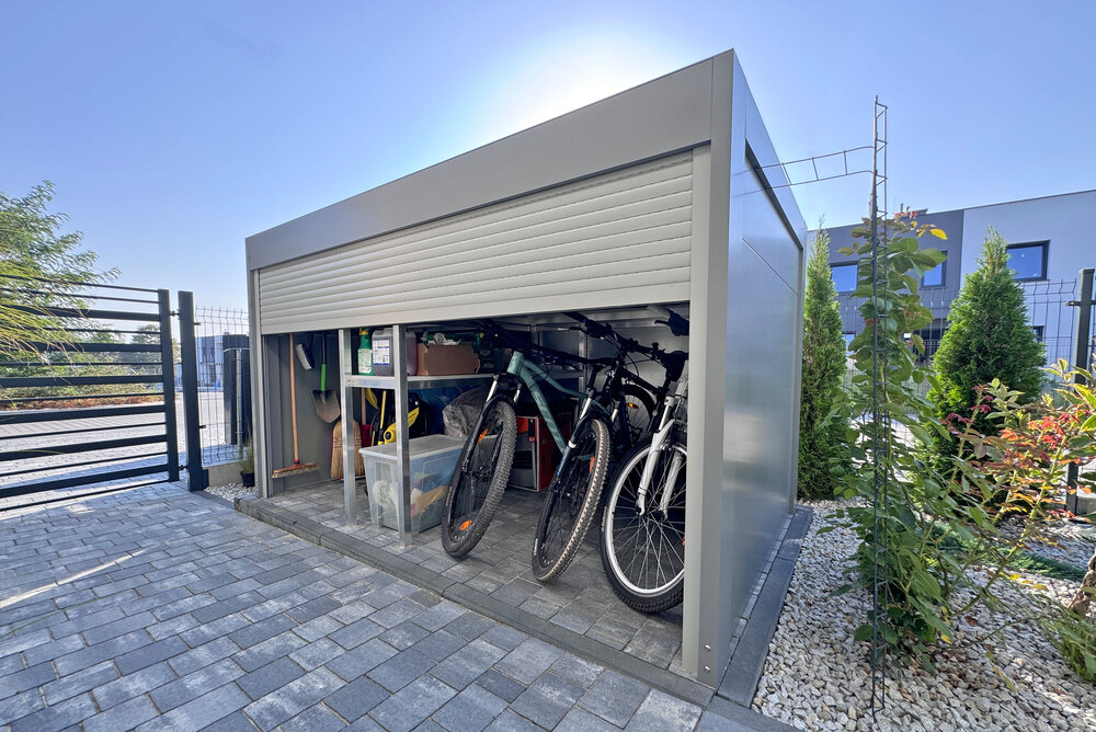 - Veelzijdige fietsenstalling, garage voor motoren, tuingereedschapschuur en opbergruimte op maat in één systeem.